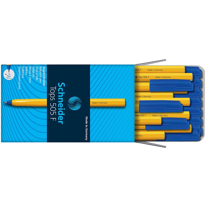 Ручка шариковая "Schneider Tops 505 F", 0.4мм., желтый, стерж. синий