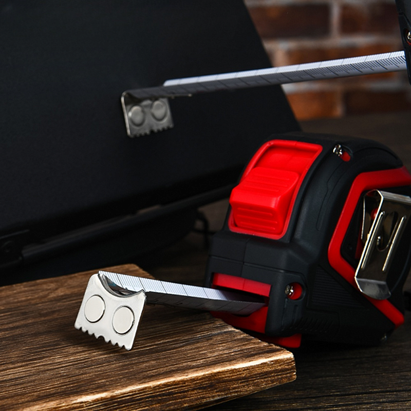 Магнитный крючок обеспечивает надёжное крепление к металлическим поверхностям, а двусторонняя шкала упрощает измерения под любым углом.