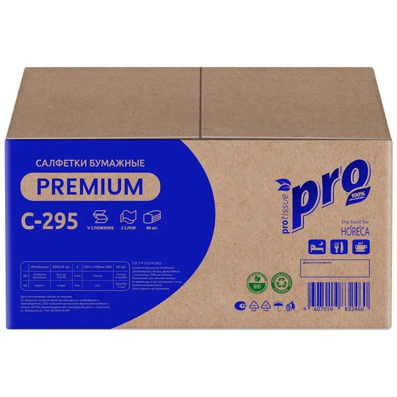 Салфетки бумажные PROtissue 10,5х21 см, 2 слоя, V - сложение, белый, 200 листов