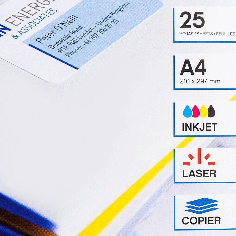 Самоклеящиеся этикетки универсальные Apli, 210x297 мм, 25 листов, 1 шт, белый