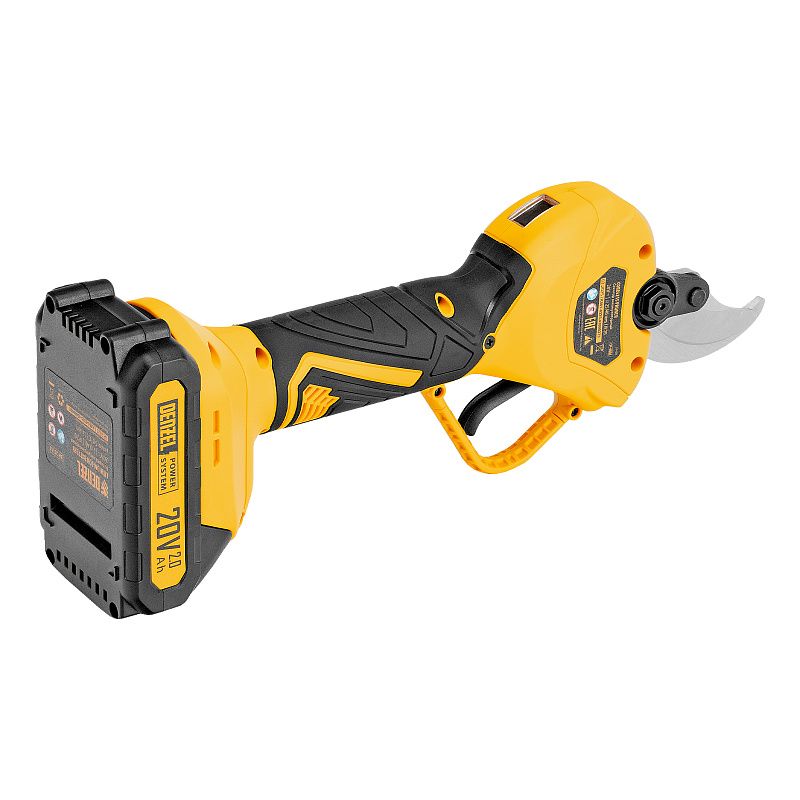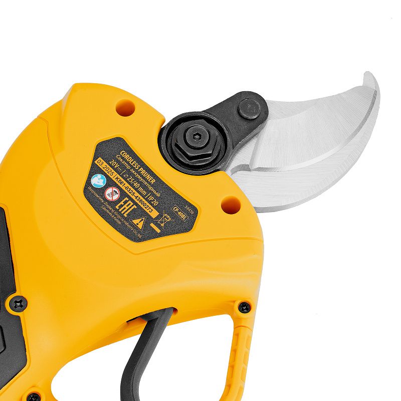 Секатор аккумуляторный, бесщет., CP-40BL, Li-Ion, 20 В, лезвия SK5 Denzel 59438, описание: