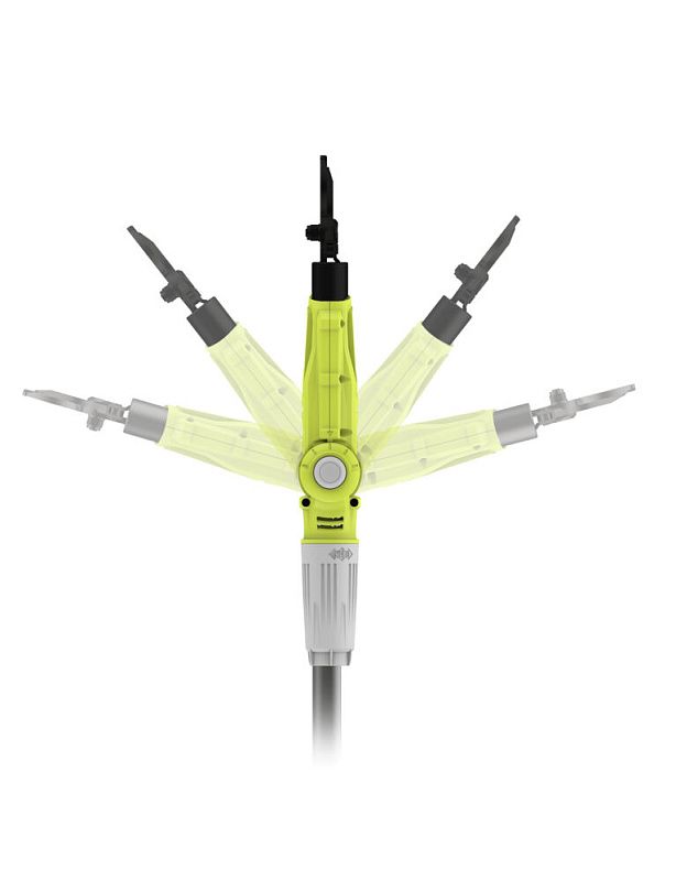 - 5-позиционная поворотная головка наклоняется до 150° и позволяет работать даже в труднодоступных местах.