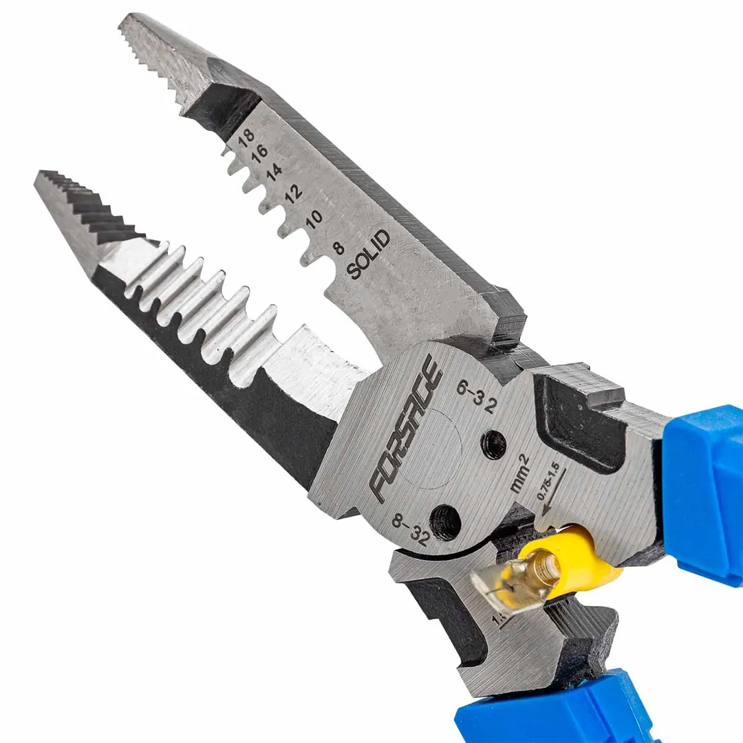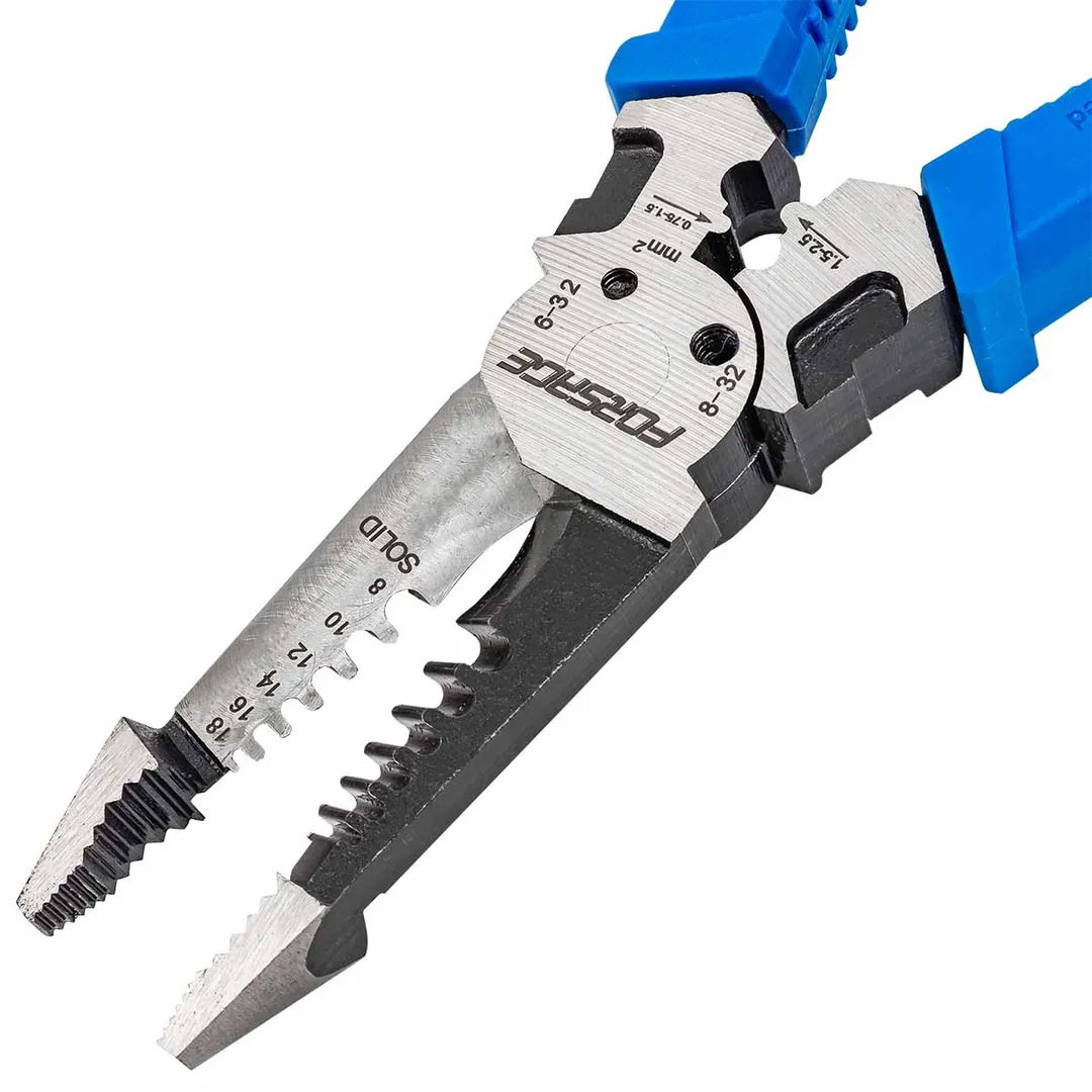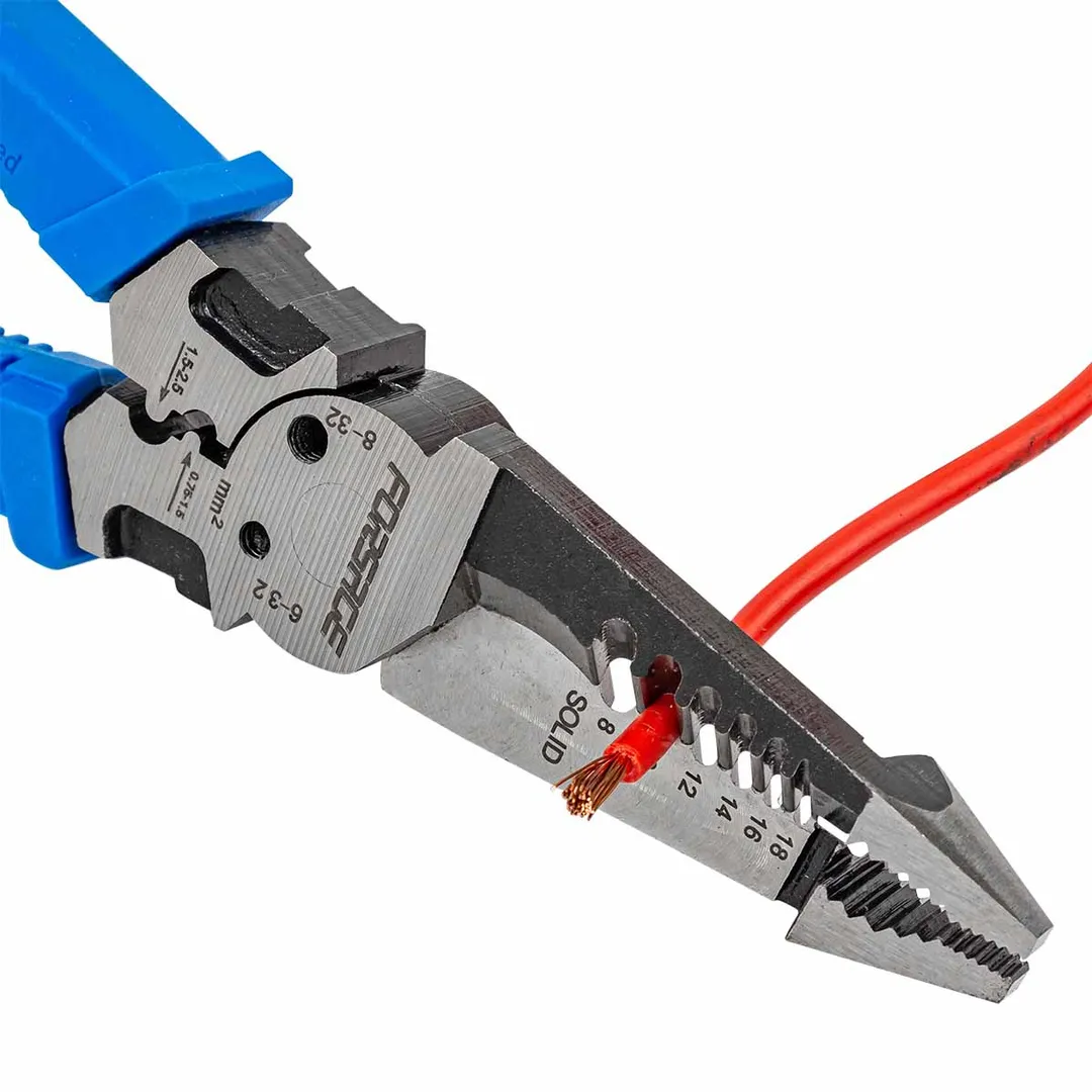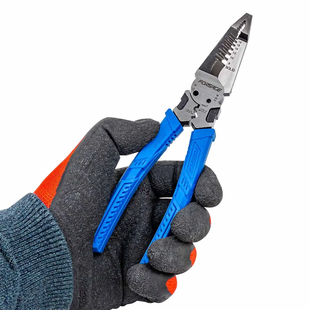 Сьёмник изоляции 200мм с эргономичными рукоятками могут использоваться для работы с проводами, кабелями и.т.д. Съёмник имеет удобные прорезиненные рукоятки, которые обеспечивают комфортный захват и предотвращают скольжение во время работы.Сьёмник предназначен для сьема изоляции сечения проводов диаметров 1-1,3-1,6-2-2,6мм (18-16-14-12-10AWG). Для этого в сьемнике предусмотрены специальные ложбины для провода, которые обеспечивают удобство работы. также обладает функцией зажима клемм 0,75-1,5мм² и 1,5-2,5мм² и специальными отверстиями для перекусывания гвоздей, проволоки и т.д. Кроме этого, благодаря рифлению на внутренней поверхности сьемник может использоваться в качестве плоскогубцев для захвата, манипулирования, удержания и поворота различных объектов и материалов. А благодаря закруглённому концу сьемник можно применять в качестве плоскогубцев в труднодоступных местах для более тонких работ.Преимущества работы с нами