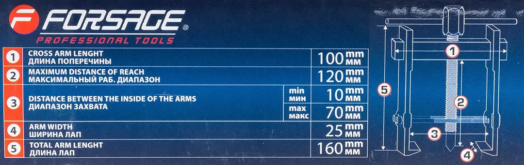 Съемник подшипников двухзахватный с фиксацией диапазон захвата 11-80 мм Forsage F-666B070