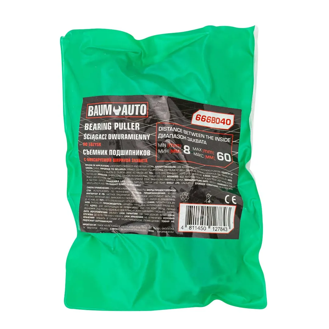 Съемник подшипников двухзахватный с фиксацией диапазон захвата 8-60 мм BaumAuto BM-666B040