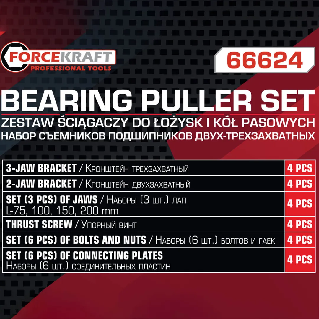 Набор съемников подшипников двух-трехзахватных 72 пр., L:75, 100, 150, 200 мм ForceKraft FK-66624