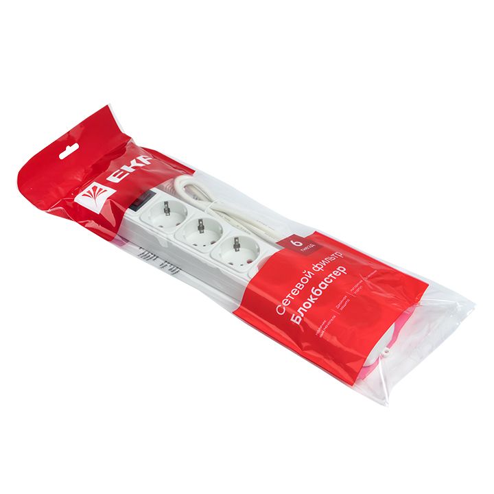 Сетевой фильтр 6*1,8м 10А/2,2кВт с выкл, c/з ПВС 3х0,75 Блокбастер EKF PROxima UFP10-375-6-018, технические характеристики: