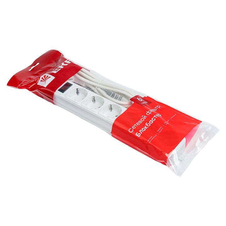 Сетевой фильтр 6*1,8м 16А/3,2кВт с выкл, c/з ПВС 3х1,0 Блокбастер XL EKF PROxima UFA16-310-6-018, технические характеристики: