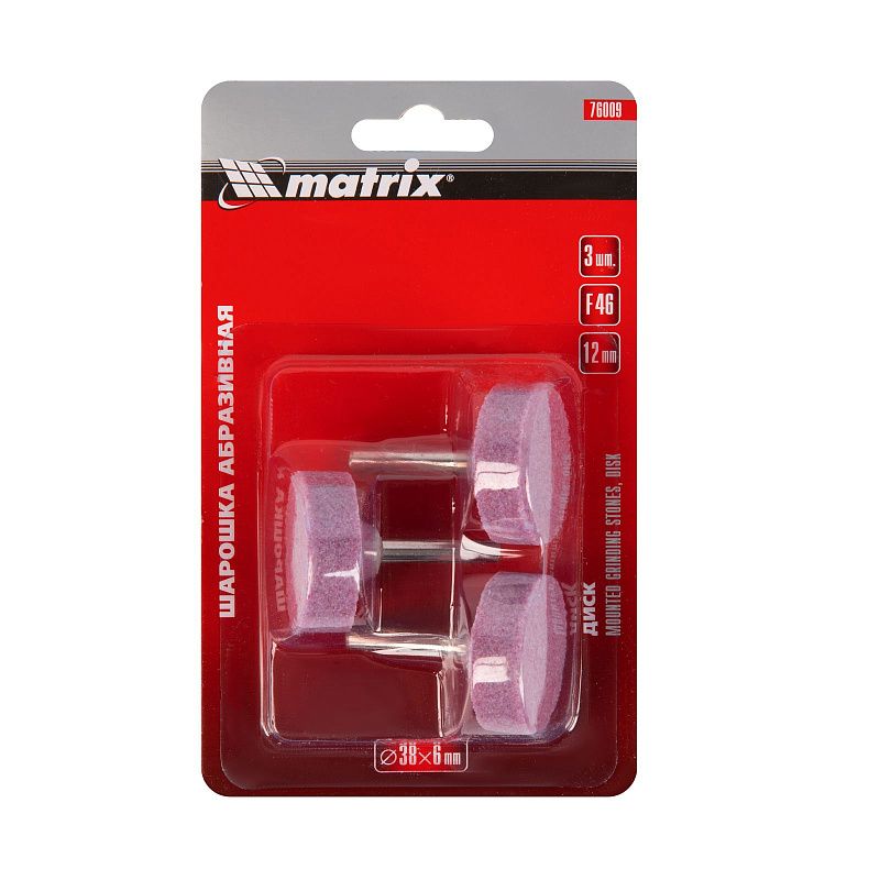Шарошка абразивная, диск, 38 x 12 x 6 мм, F46, 3 шт Matrix 76009, описание:
