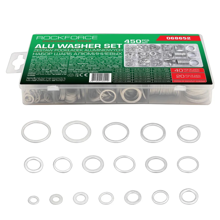 Набор алюминиевых шайб 10-29 мм 450 пр RockForce RF-068652