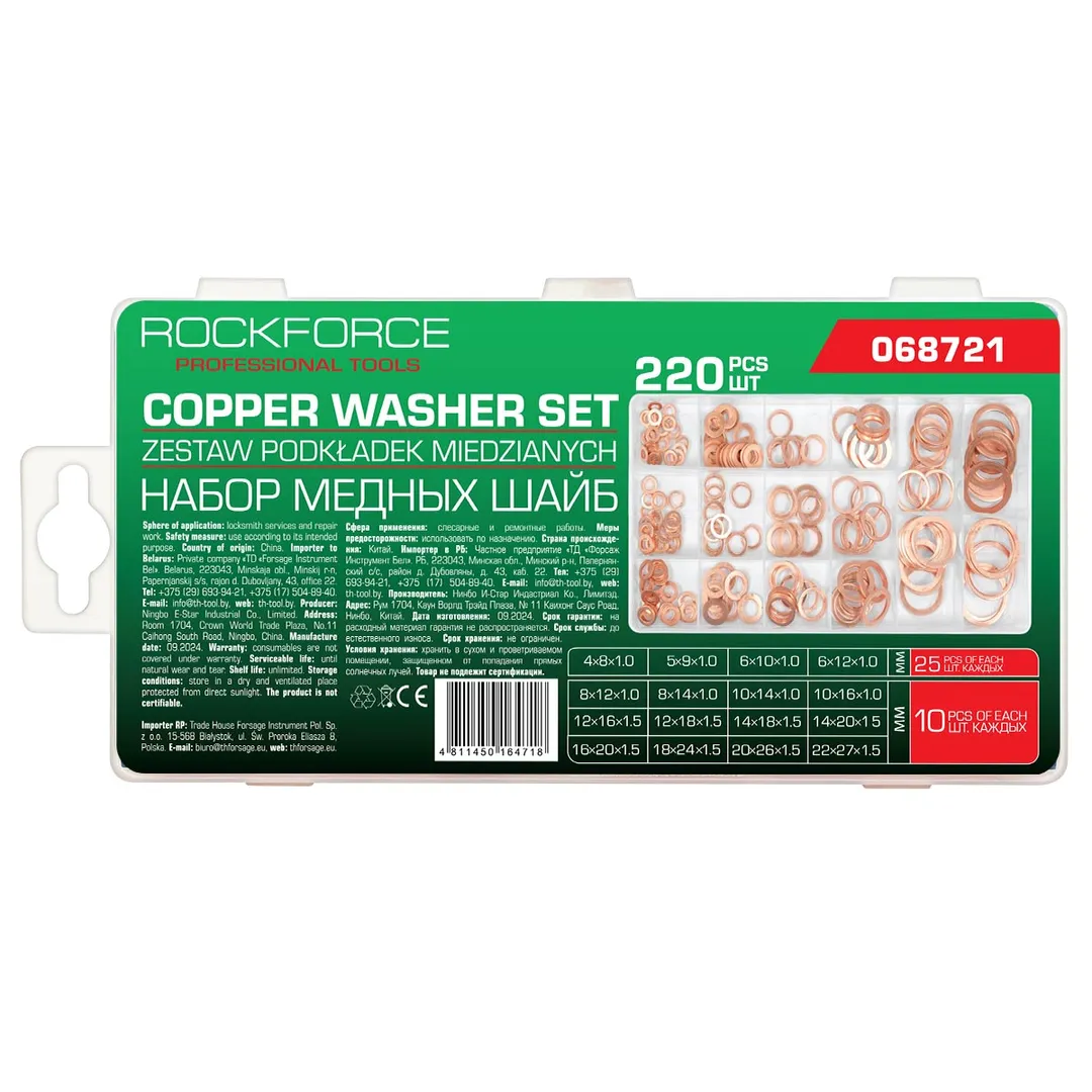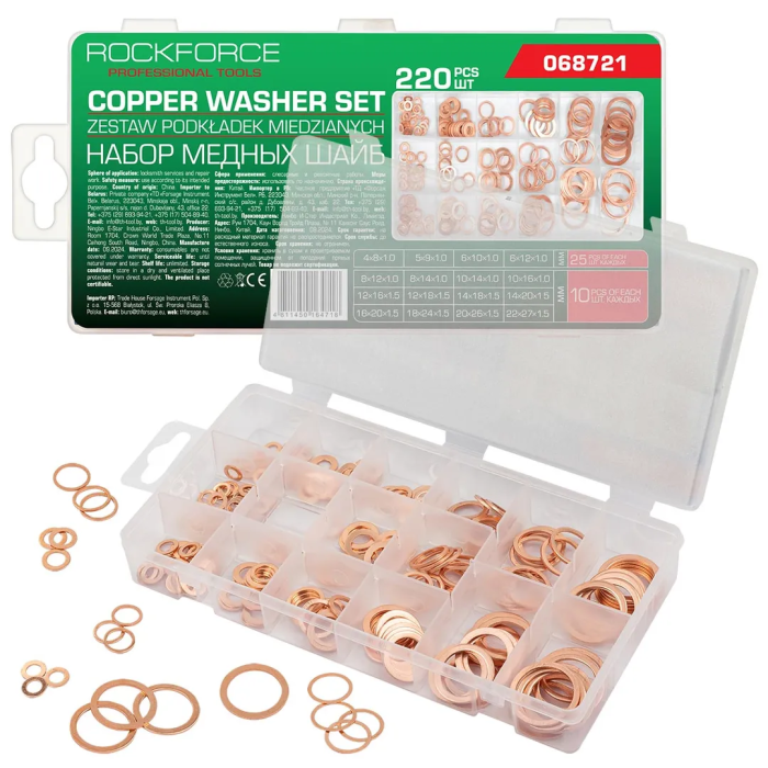 Набор медных шайб 4-22 мм 220 пр RockForce RF-068721