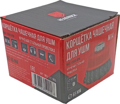 Щетка чашечная крученая проволка стальная для УШМ 65 мм М14 HEADROCK 980-111-065, описание:
