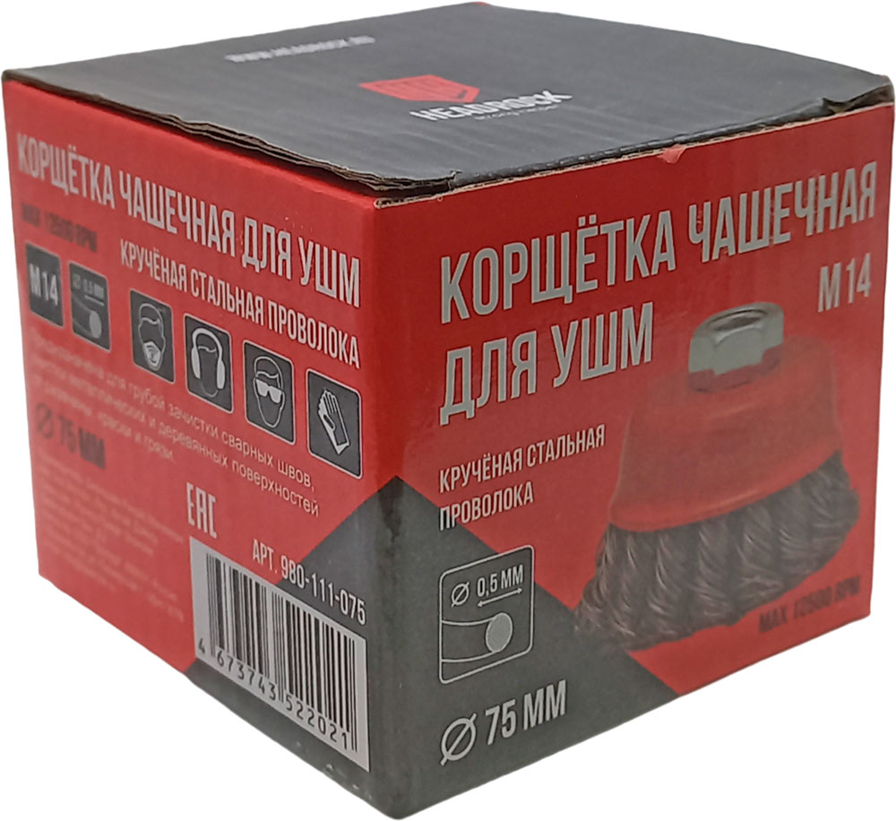 Щетка чашечная крученая проволка стальная для УШМ 75 мм М14 HEADROCK 980-111-075, описание: