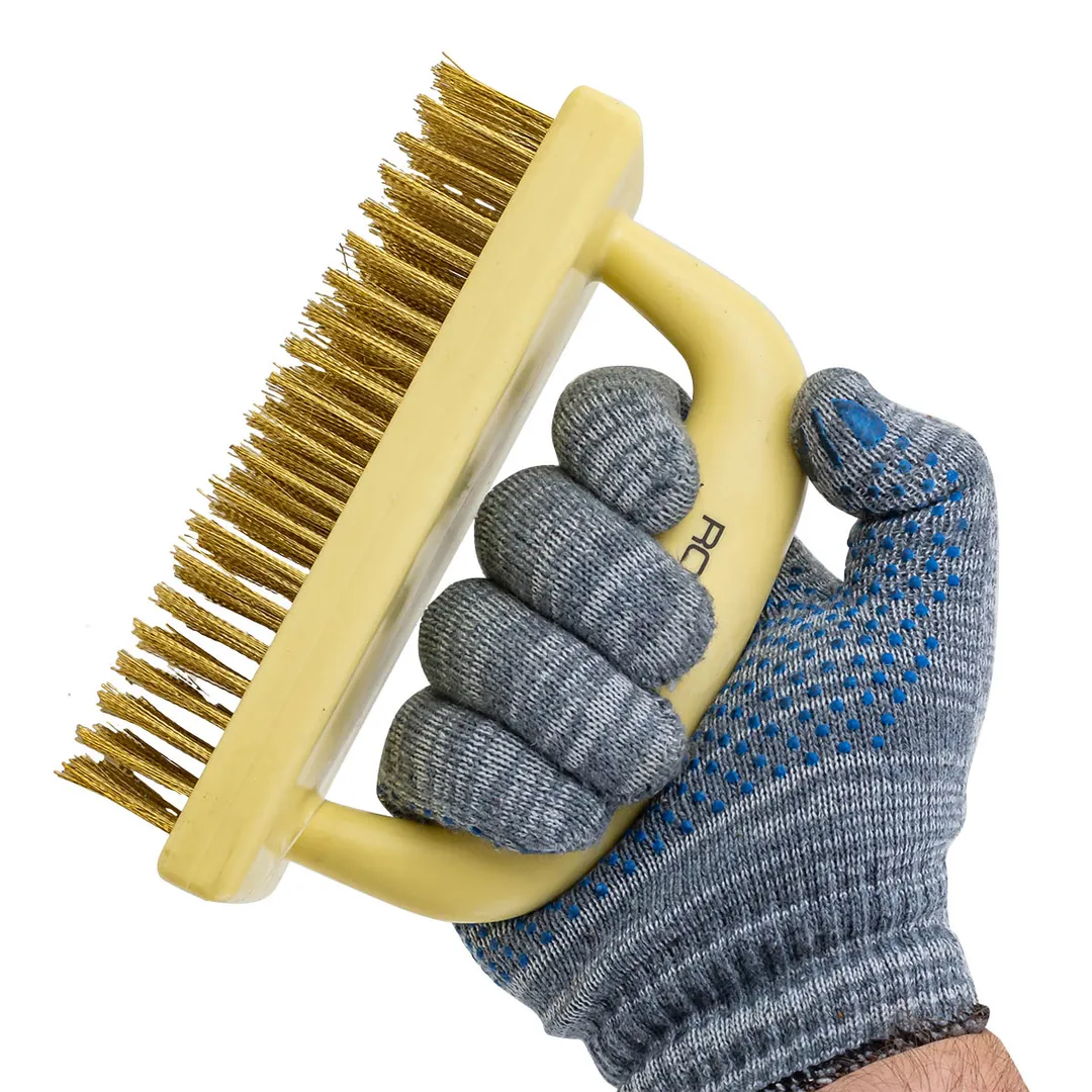 Щетка по металлу или корщетка ручная в пластиковом корпусе 8x22 ряда с эргономической рукояткой является эффективным, простым в применении и недорогим инструментом для качественной механической чистки поверхностей. Эффективно очищает металлические, деревянные и другие поверхности от въевшихся загрязнений, ржавчины, старых лакокрасочных покрытий. Щетка представлена в прочном пластиковом корпусе, имеется эргономичная рукоятка. Рукоятка обеспечивают надежный хват, что повышает комфорт во время работы. Прочный пластиковый корпус не подвержен коррозии и рассыханию, поэтому щетка прослужит долго. Конструкция позволяет проводить зачистку со значительным усилием. Восьмирядная щетина обеспечивает высокую скорость обработки. Щетина изготовлена из прочной латунной проволоки и устойчива к деформациям при высоких нагрузках. Проволока надежно закреплена в основании и не выпадает во время работы. Используют для зачистки поверхностей от ржавчины, старой краски и прочих загрязнений. Шлифует и полирует швы и налет после сварки, устраняет заусеницы и другие дефекты на заготовках. Щетку по металлу используют при ремонте, сварочных работах, изготовлении изделий из стальных профилей или труб.Преимущества работы с нами