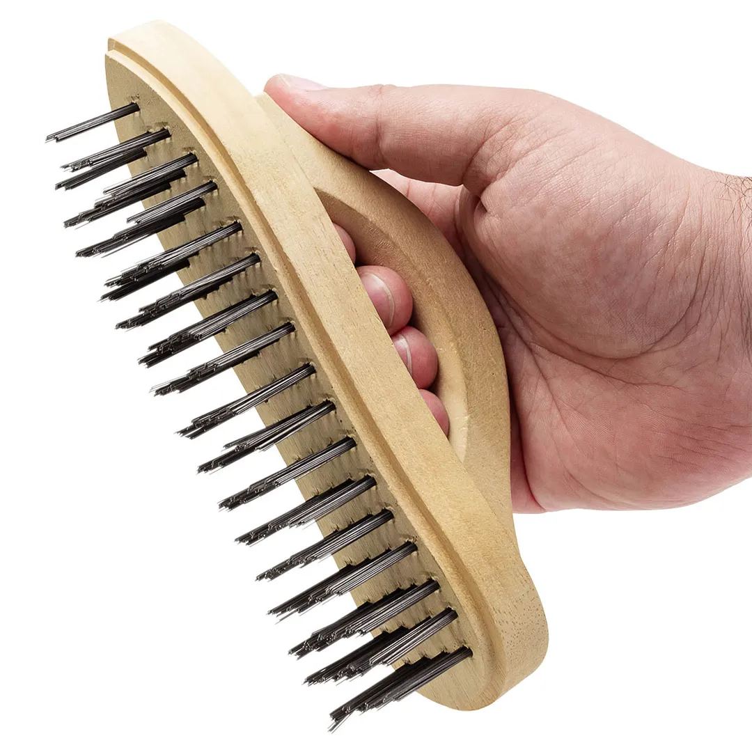 Щетка по металлу или корщетка ручная в деревянном корпусе 5x17 ряда с эргономической рукояткой является эффективным, простым в применении и недорогим инструментом для качественной механической чистки поверхностей. Эффективно очищает металлические, деревянные и другие поверхности от въевшихся загрязнений, ржавчины, старых лакокрасочных покрытий. Щетка представлена в прочном деревянном корпусе, имеется эргономичная рукоятка. Рукоятка обеспечивают надежный хват, что повышает комфорт во время работы. Прочный деревянный корпус не подвержен коррозии и рассыханию, поэтому щетка прослужит долго. Конструкция позволяет проводить зачистку со значительным усилием. Пятирядная щетина обеспечивает высокую скорость обработки. Щетина изготовлена из прочной углеродистой стальной проволоки и устойчива к деформациям при высоких нагрузках. Проволока надежно закреплена в основании и не выпадает во время работы. Используют для зачистки поверхностей от ржавчины, старой краски и прочих загрязнений. Шлифует и полирует швы и налет после сварки, устраняет заусеницы и другие дефекты на заготовках. Щетку по металлу используют при ремонте, сварочных работах, изготовлении изделий из стальных профилей или труб.Преимущества работы с нами