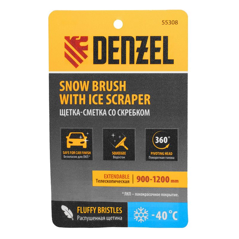 Щетка-сметка для снега со скребком, телескоп, поворотная голова, водосгон, 900-1200 мм Denzel 55308, описание: