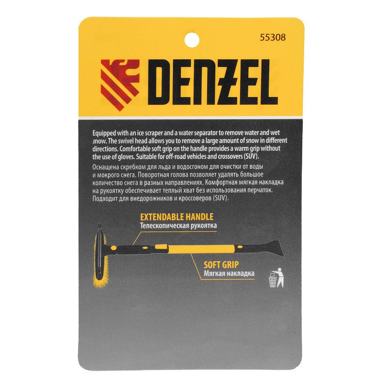 Щетка-сметка Denzel 55308 со скребком, поворотной головой, водосгоном и телескопической рукояткой длиной 900-1200 мм предназначена для быстрой и эффективной очистки кузова автомобиля от снега и наледи. Ее использование позволяет сохранить лакокрасочное покрытие автомобиля в хорошем состоянии, а также обеспечивает безопасность водителя и других участников дорожного движения. Инструмент подходит для внедорожников и кроссоверов.