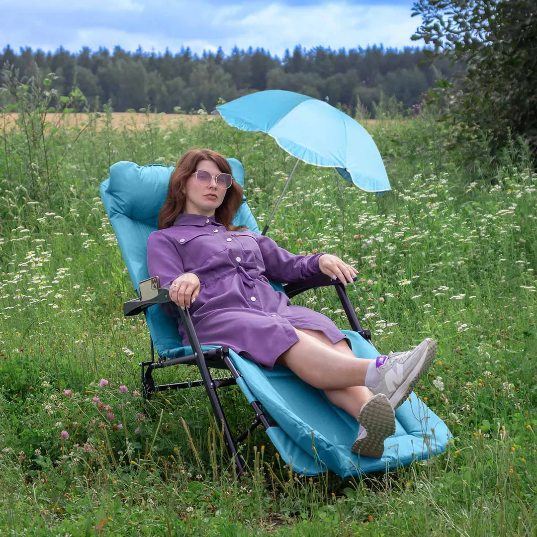 Шезлонг складной, голубой, в комплекте с зонтом WMC TOOLS WMC-FG-HY-8000LB-Z