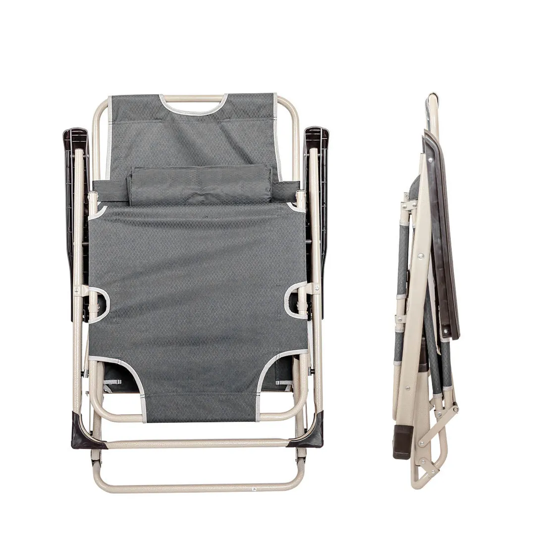 Шезлонг складной с подголовником и подлокотниками 510х1770 мм, серый WMC TOOLS WMC-FG-HY-8007G