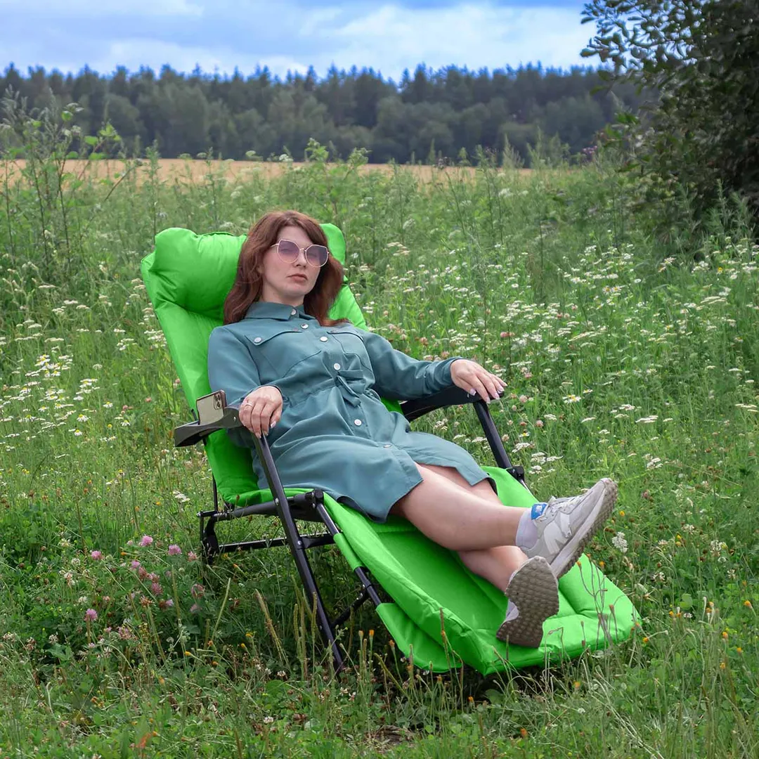 Шезлонг складной с подлокотниками на мягкой основе, светло-зеленый, 1780х670х300 мм, до 200 кг WMC TOOLS WMC-FG-HY-8000LG