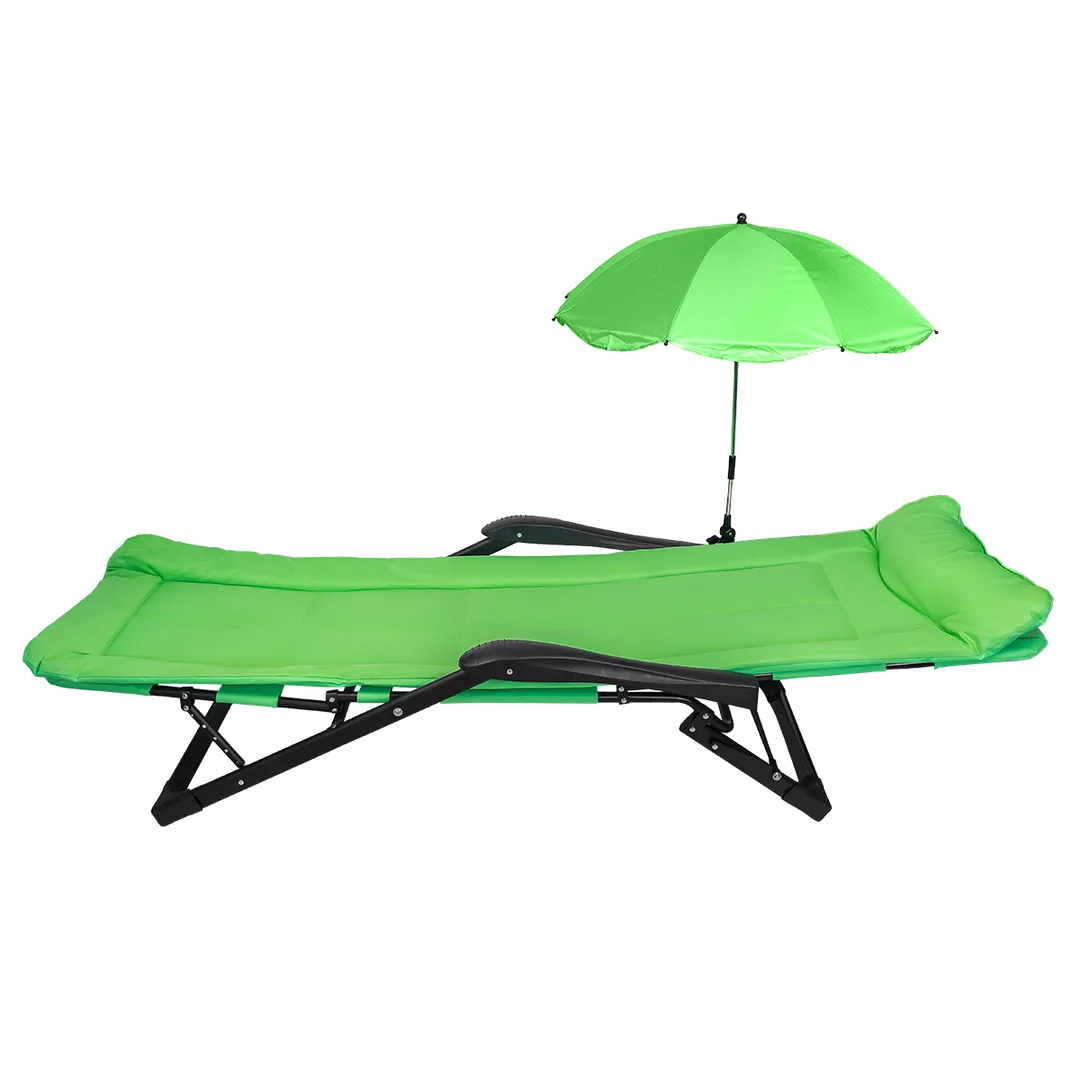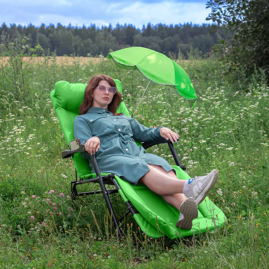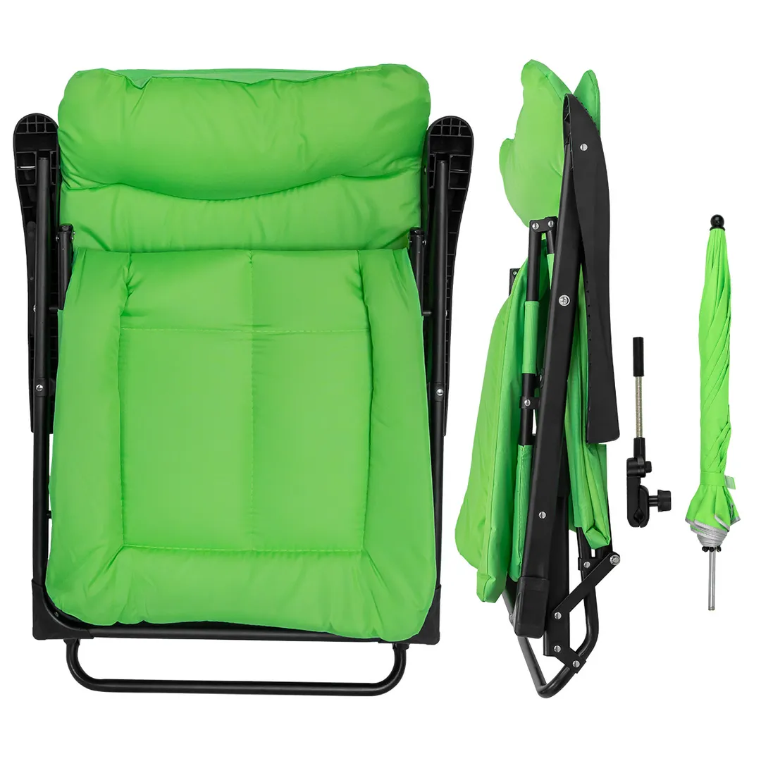 Шезлонг складной с подлокотниками на мягкой основе в комплекте с зонтом садовым, светло-зеленый, 1780х670х300 мм, до 200 кг WMC TOOLS WMC-FG-HY-8000LG-Z