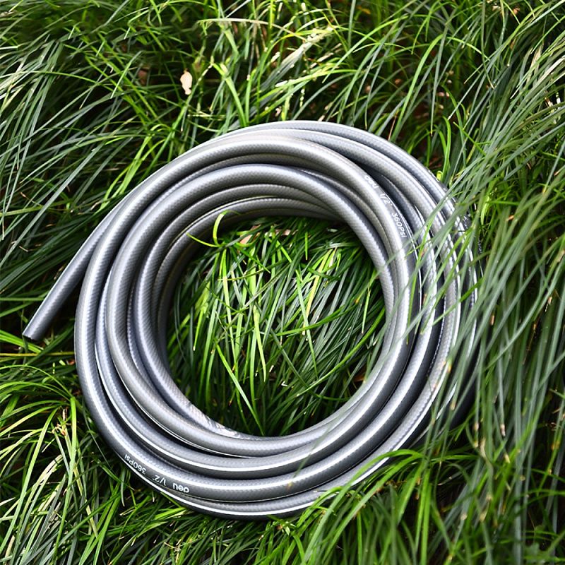 Третий слой представляет собой армирующую нить, которая придаёт шлангу дополнительную прочность, предотвращая его перегибание и перекручивание. Это позволяет легко маневрировать с шлангом вокруг сада без опасения поломки или проблем с подачей воды.