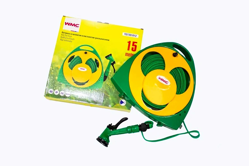 Шланг садовый ПВХ 15 м на катушке в комплекте с пистолетом-распылителем WMC TOOLS WMC-TG7301012