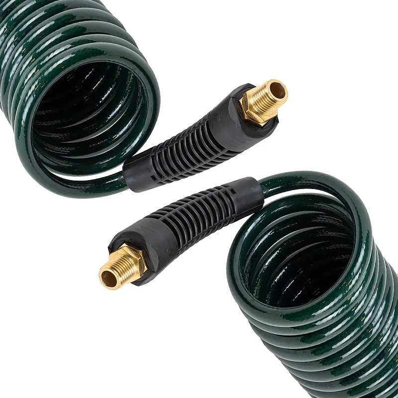 Шланг витой полиуретановый 6.5х10 мм, 15 м, с резьбовыми наконечниками 1/4'', 15бар, раб. t -20 до +60°С RockForce RF-AHC-48C