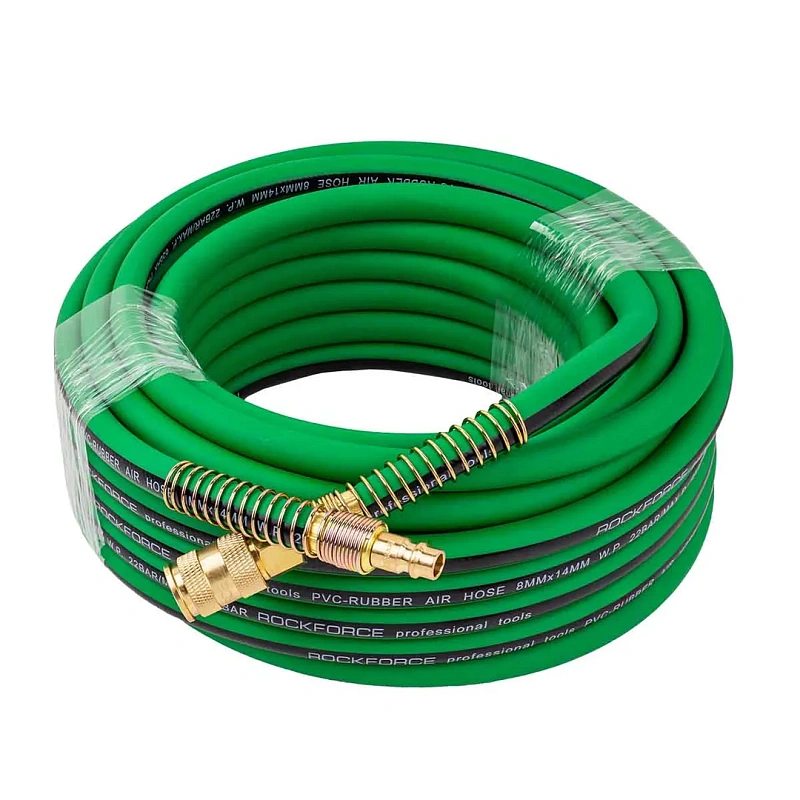 Шланг воздушный резиновый армированный с быстросъемами 8х14 мм, 15 м RockForce RF-AHC-52D