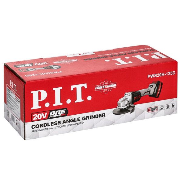 Шлифмашина угловая аккум. бесщёточная SOLO 20 В, 125 мм, 3 ск, 4500/6500/8500 об/мин PIT PWS20H-125D