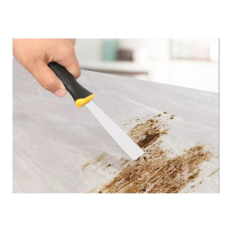 Кроме того, шпатель оснащен удобной эргономичной прорезиненной ручкой, которая обеспечивает комфортное и надежное сцепление при работе. Это помогает уменьшить усталость и повысить эффективность использования инструмента.