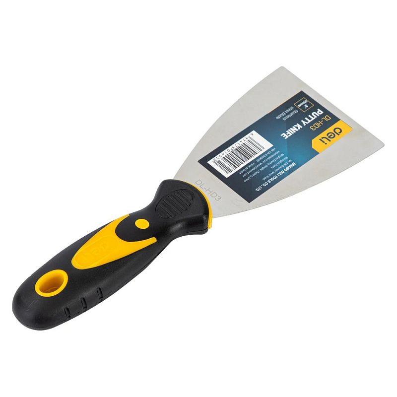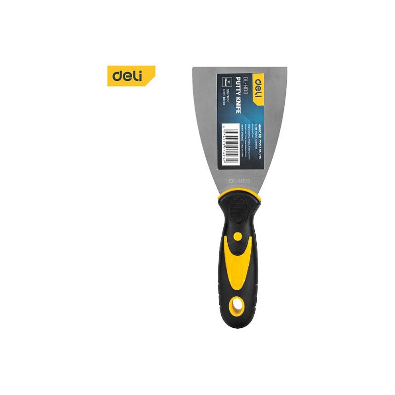 Шпатель нержавеющий Deli YS EDL-HD3, 75 мм, ручка 2K, черный, желтый