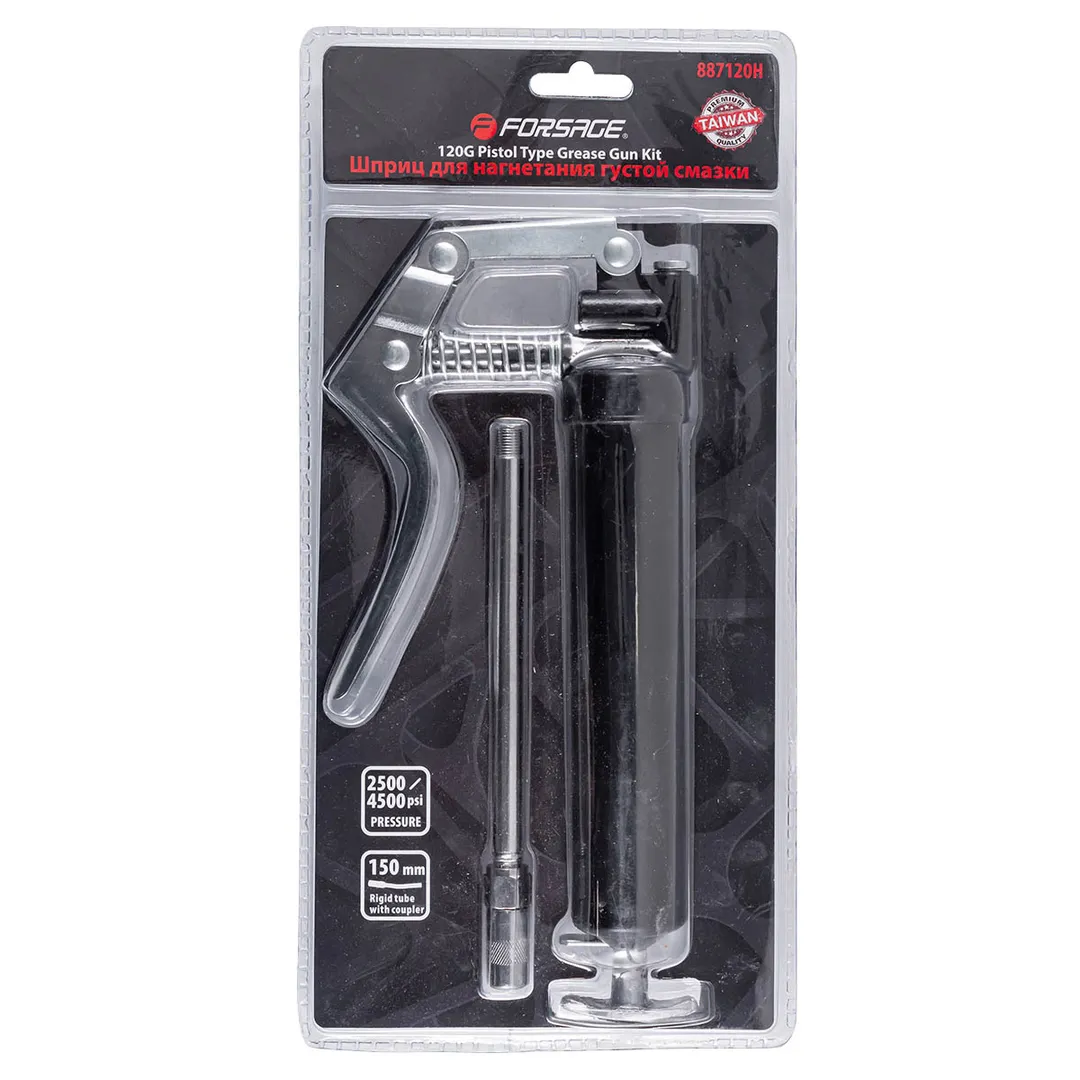 Шприц для нагнетания густой смазки с жестким наконечником 120 гр. Forsage F-887120H, описание и характеристики: