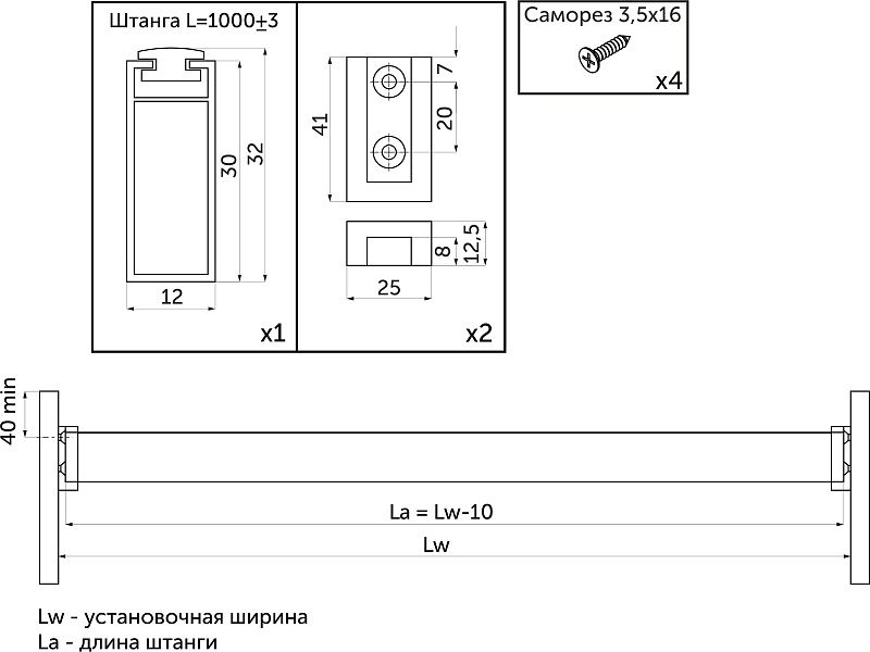 Наличие демпфера предотвращает шумное движение вешалок-плечиков и защищает штангу от царапин, толщина стенки 0,9 мм. Штанга выполнена из алюминия, цвет: черный браш. В комплекте: труба гардеробная прямоуг. L-1000 с демпфером - 1 шт. , держатель концевой - 2 шт. , PH саморез с потайной головкой d3*16 - 4 штТехнические характеристики: