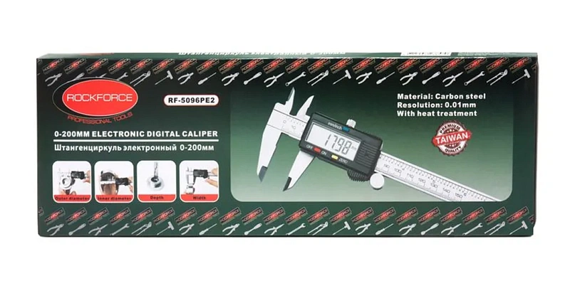Штангенциркуль электронный 0-200 мм, 0.01 мм, внутр. Ø, наруж. Ø + глубиномер RockForce RF-5096PE2