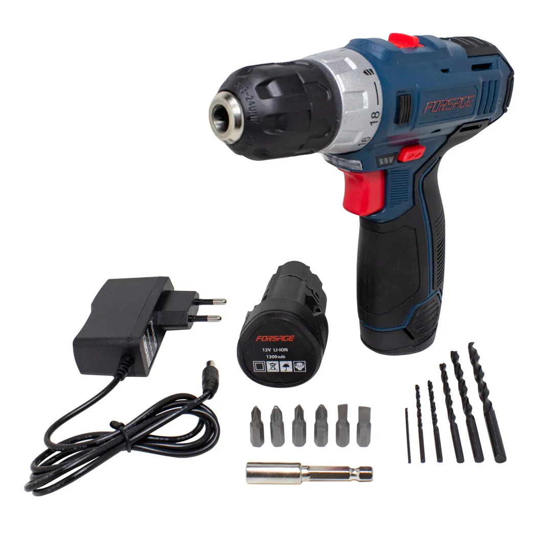 Шуруповерт аккумууляторный 12V, 1.3Ah с набором аксессуаров Forsage F-BT-CD11-A1 12V, описание и характеристики: