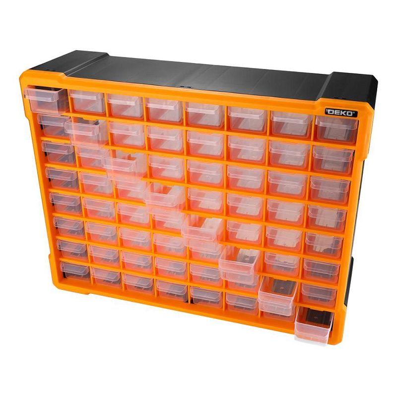 - Система хранения DEKO Smart box 64 представляет собой удобный контейнер с 64 ячейками для хранения инструментов и аксессуаров.