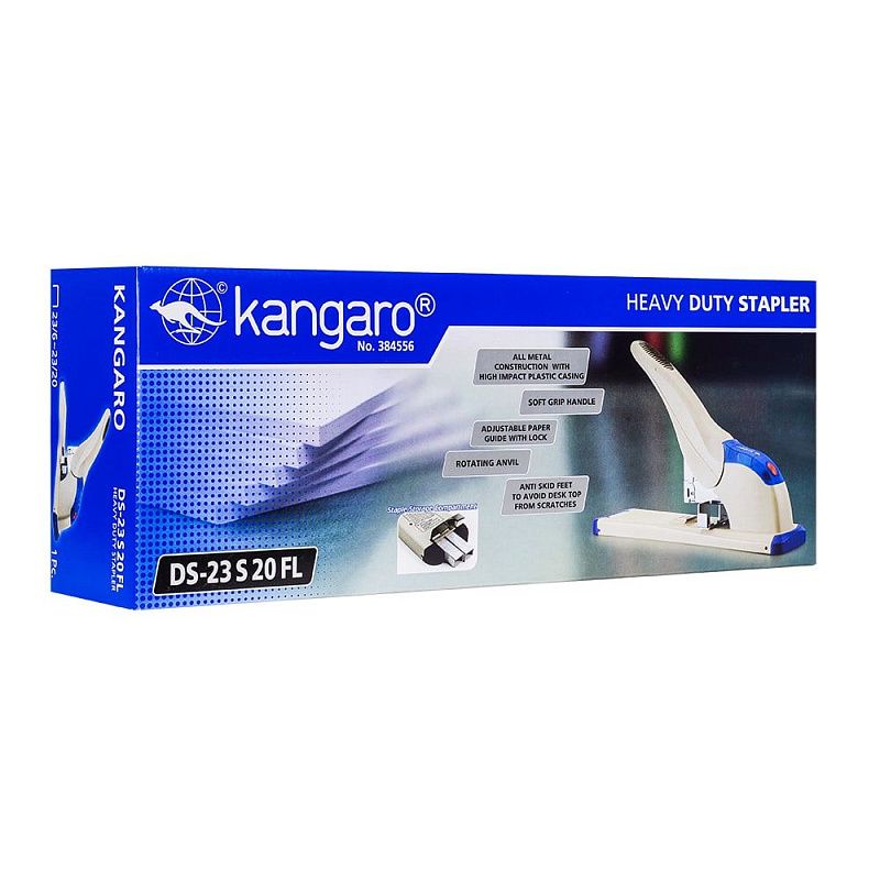 Мощный скобосшиватель Kangaro DS-23 S 20FL удобен для применения в бухгалтерии, канцелярии и других административных отделах там, где требуется сшить большое количество документов. Надежен и прост в обращении благодаря прорезиненном держателе, а также специальному отсеку для хранения скоб. Имеется также металлический механизм фиксации бумаги на нужной длине. Механизм скрепления выполнен из прочного металла, а корпус из высококачественного пластика.