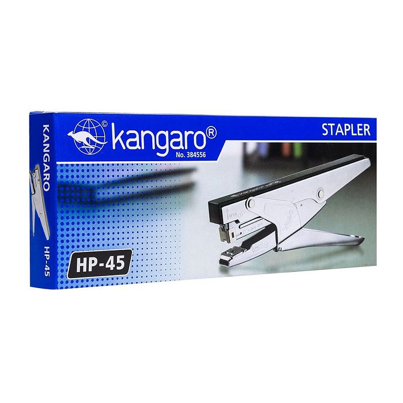 Ручной степлер для сшивания листов навесу Kangaro HP-45. Абсолютные простота и эффективность использования во всех сферах: в офисе, на складе, при оформительских работах. Корпус выполнен из металла, что гарантирует долговечность и ударостойкость.