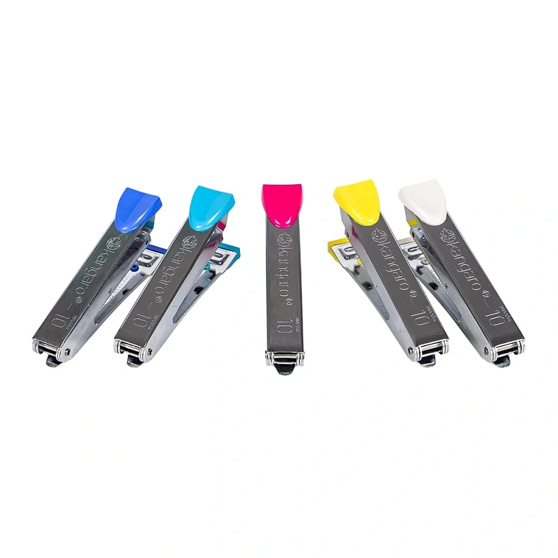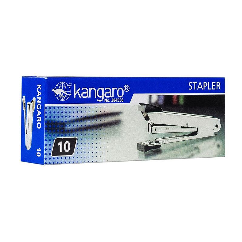 Скобосшиватель Kangaro No.10 изготовлен из металла, пластиковый держатель обеспечивает комфортный степлинг. Степлер раскрывается на 180 градусов, что позволяет использовать его для крепления документов к офисным доскам.