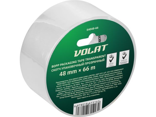 Скотч упаковочный прозрачный 48 мм, 66 м, плотность 45мк ВОЛАТ 54048-66