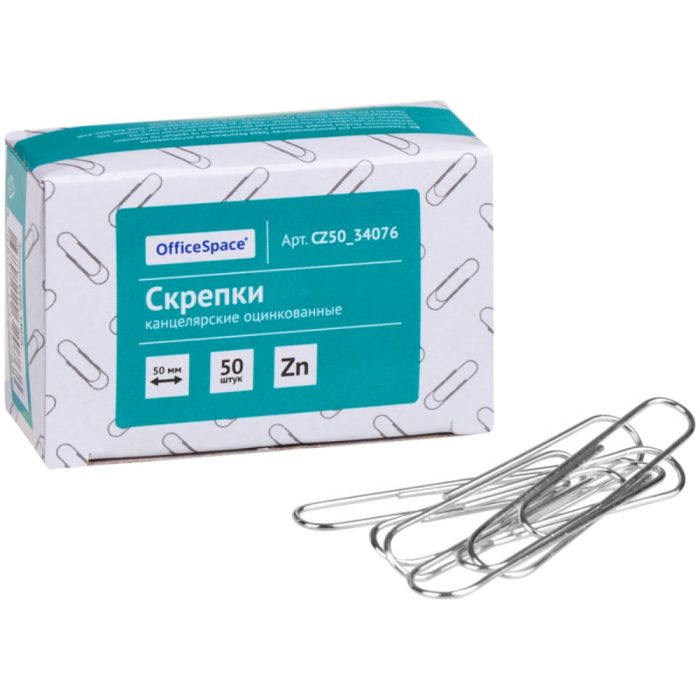 Скрепки 50 мм "OfficeSpace"., 50 шт., серебристый