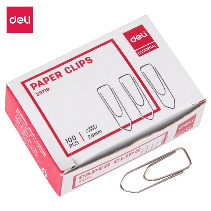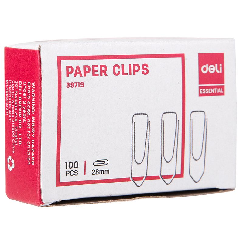 Скрепки "Deli", 28 мм, 100 шт, серебристый