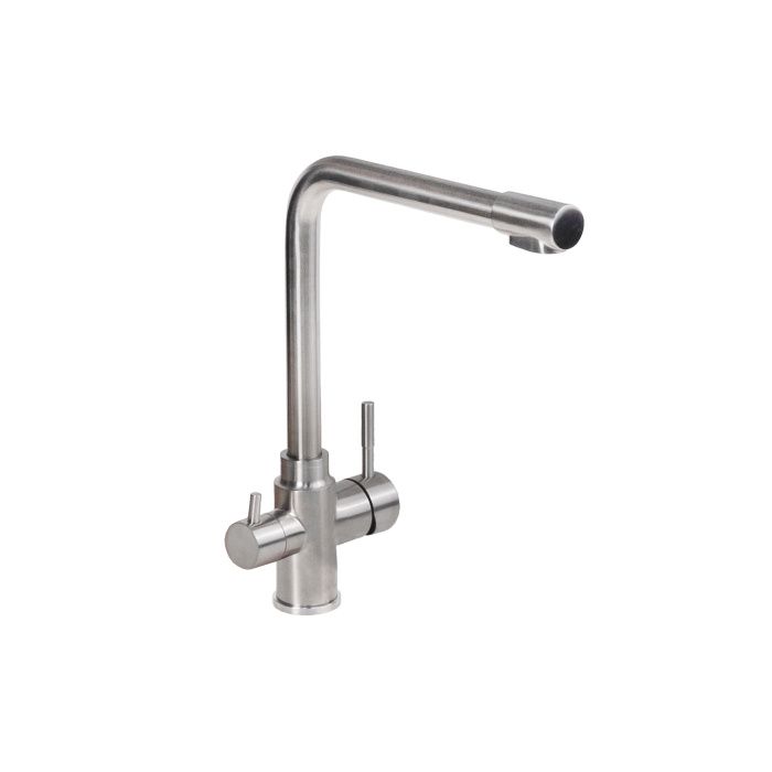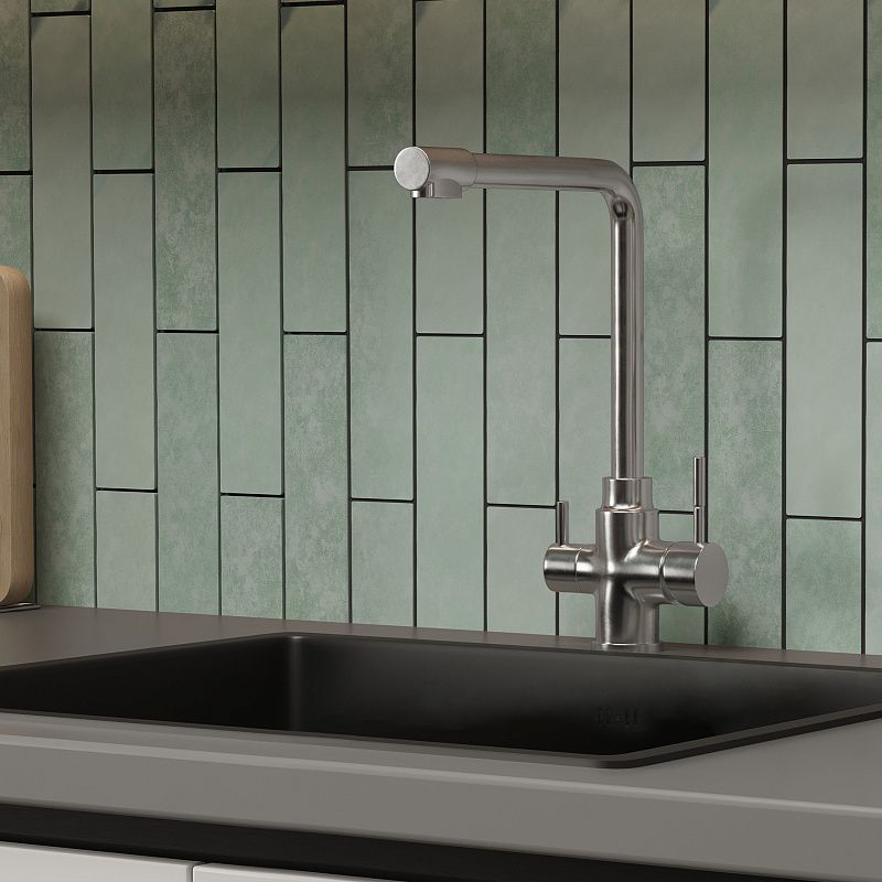Универсальный смеситель для моек из нержавеющей стали и камня (в т. ч. и кварца) - поворотный высокий излив для удобства работы; - керамический картридж для долговечности и мягкого хода; - материал: нержавеющая сталь 304SS — прочная, устойчивая к коррозии и безопасная для здоровья; - цвет: сатин — стильный, универсальный и легко сочетается с любыми кухонными решениями;- комплектация: смеситель, подводка (шланги), инструкция по монтажу, гарантийный талон, индивидуальная упаковка.Технические характеристики: