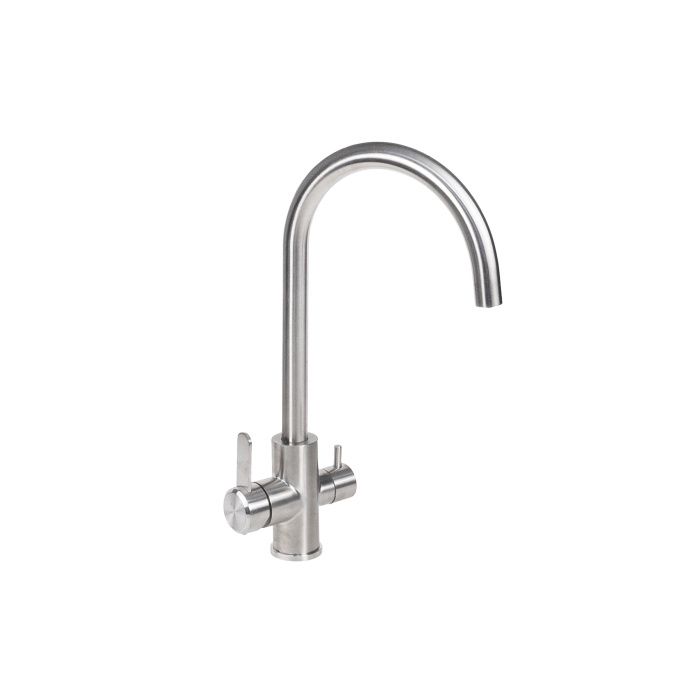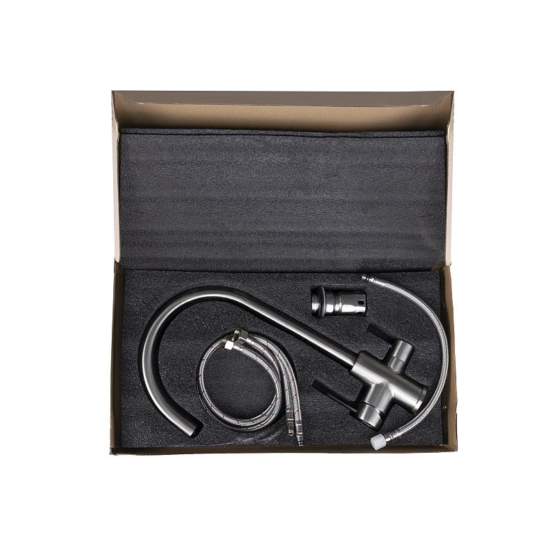 Универсальный смеситель для моек из нержавеющей стали и камня (в т. ч. и кварца) - поворотный высокий излив для удобства работы; - керамический картридж для долговечности и мягкого хода; - материал: нержавеющая сталь 304SS — прочная, устойчивая к коррозии и безопасная для здоровья; - цвет: сатин — стильный, универсальный и легко сочетается с любыми кухонными решениями;- комплектация: смеситель, подводка (шланги), инструкция по монтажу, гарантийный талон, индивидуальная упаковка.Технические характеристики: