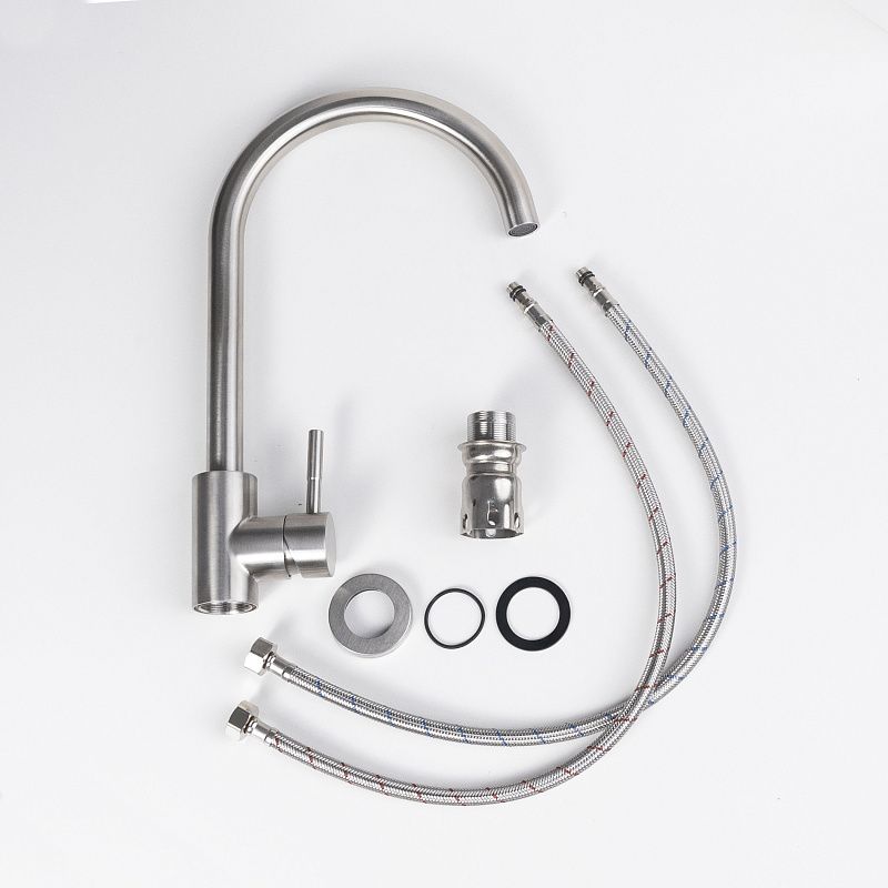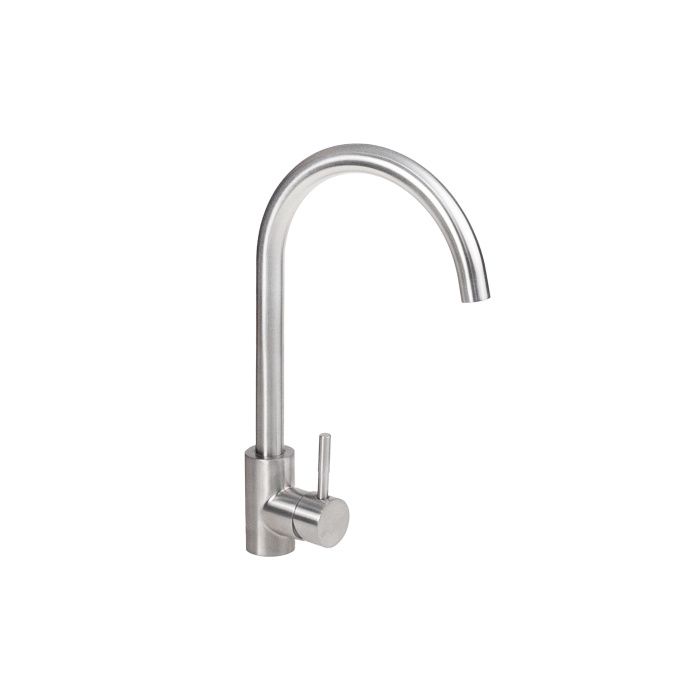 Универсальный смеситель для моек из нержавеющей стали и камня (в т. ч. и кварца) - поворотный высокий излив для удобства работы; - керамический картридж для долговечности и мягкого хода; - материал: нержавеющая сталь 304SS — прочная, устойчивая к коррозии и безопасная для здоровья; - цвет: сатин — стильный, универсальный и легко сочетается с любыми кухонными решениями;- комплектация: смеситель, подводка (шланги), инструкция по монтажу, гарантийный талон, индивидуальная упаковка.Технические характеристики: