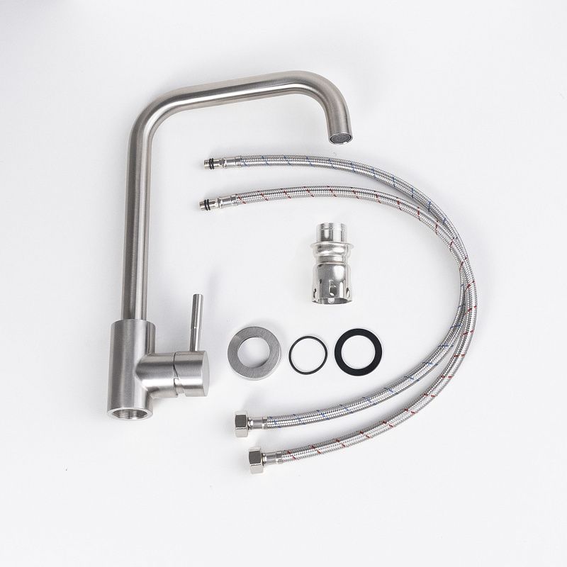 Универсальный смеситель для моек из нержавеющей стали и камня (в т. ч. и кварца) - поворотный высокий излив для удобства работы; - керамический картридж для долговечности и мягкого хода; - материал: нержавеющая сталь 304SS — прочная, устойчивая к коррозии и безопасная для здоровья; - цвет: сатин — стильный, универсальный и легко сочетается с любыми кухонными решениями;- комплектация: смеситель, подводка (шланги), инструкция по монтажу, гарантийный талон, индивидуальная упаковка.Технические характеристики: