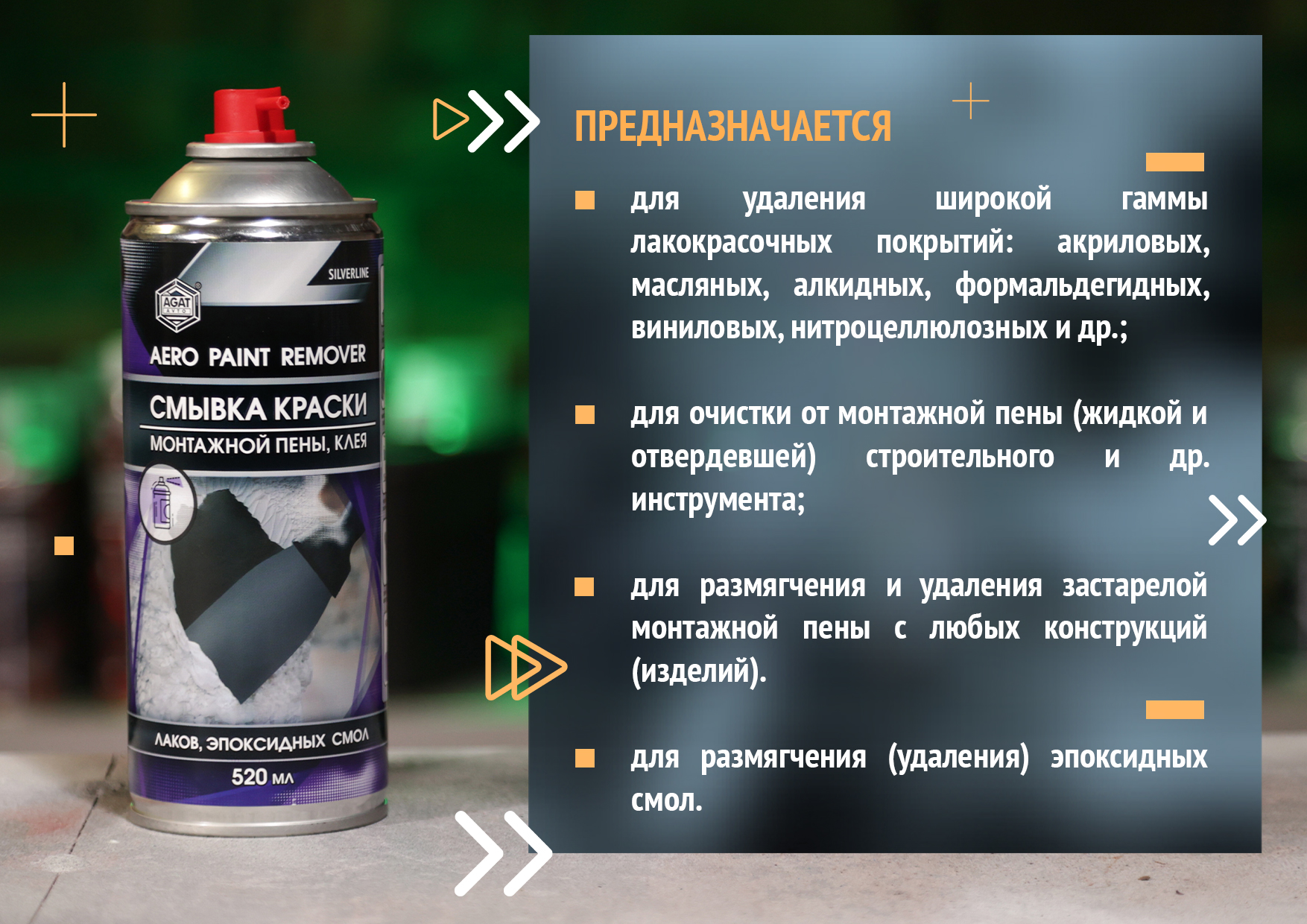 Смывка - удалитель краски (аэрозоль) 520 мл AGAT SL0703, описание: