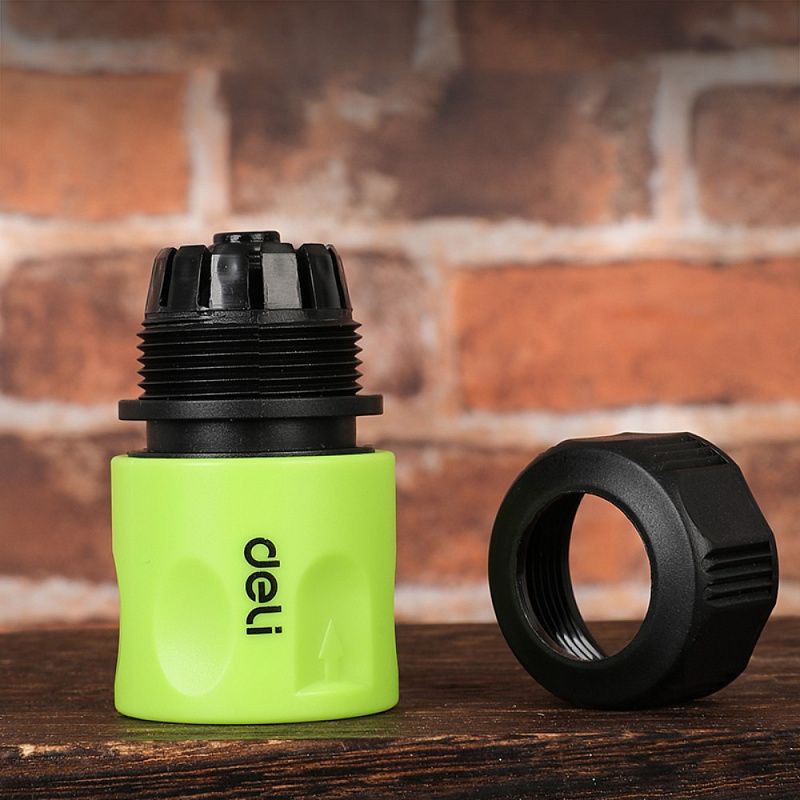 Соединитель-коннектор для шлангов Deli GS EDL8793, 1/2", быстросъемный с аквастопом, черный, зеленый