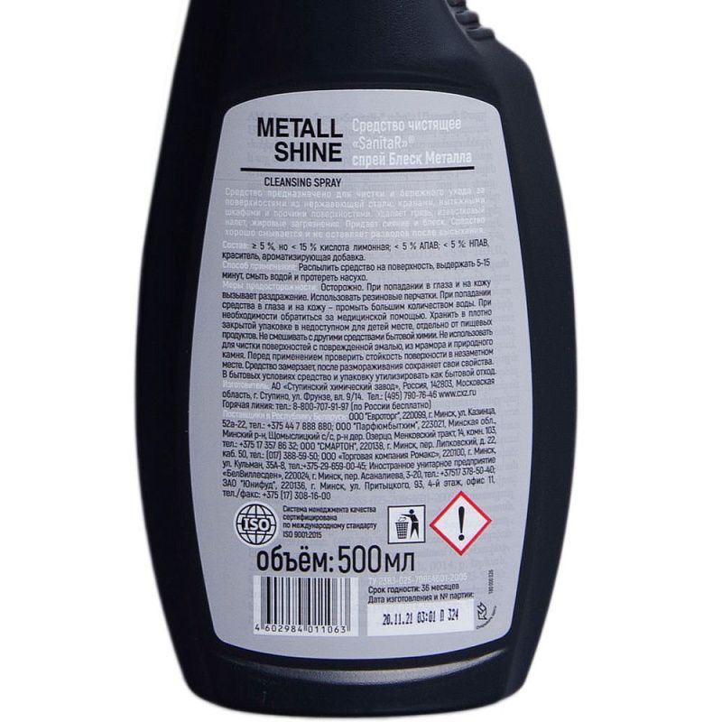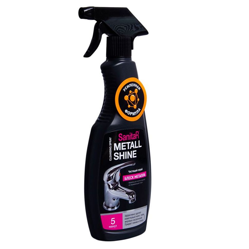 Спрей SANITAR БЛЕСК МЕТАЛЛА разработан специально для чистки, ежедневного бережного ухода и защиты поверхностей из нержавеющей стали: кранов, моек, вытяжных шкафов, хромированных элементов на кухне и в ванной комнате. Удаляет известковый налёт, мыльные разводы, грязь, жировые загрязнения. Придает устойчивый блеск и сияние, защищает от новых загрязнении, не оставляет царапин. Средство хорошо смывается и не оставляет разводов после высыхания. Идеально для вертикальных поверхностей.